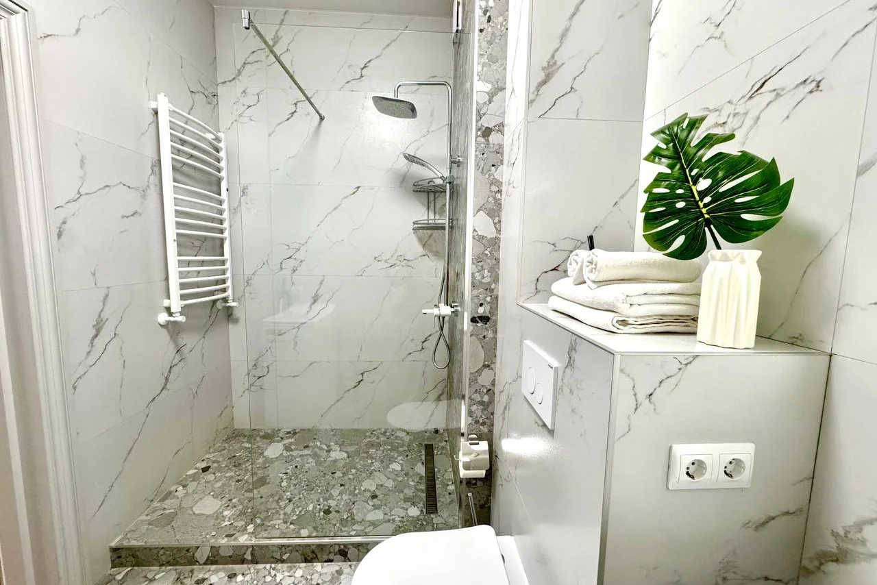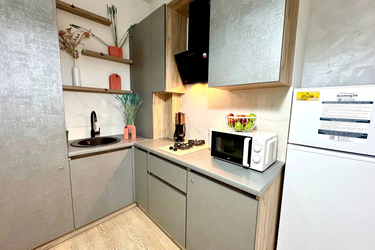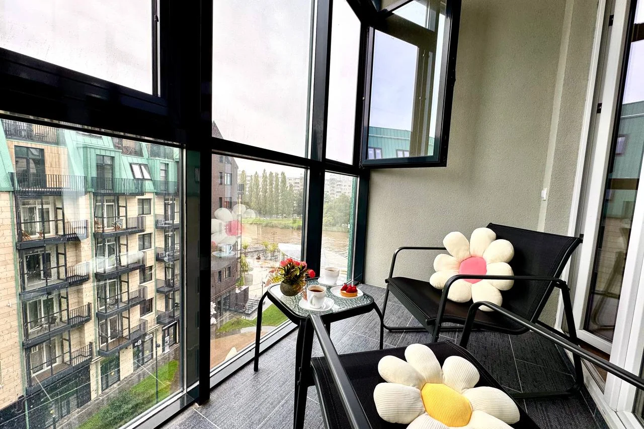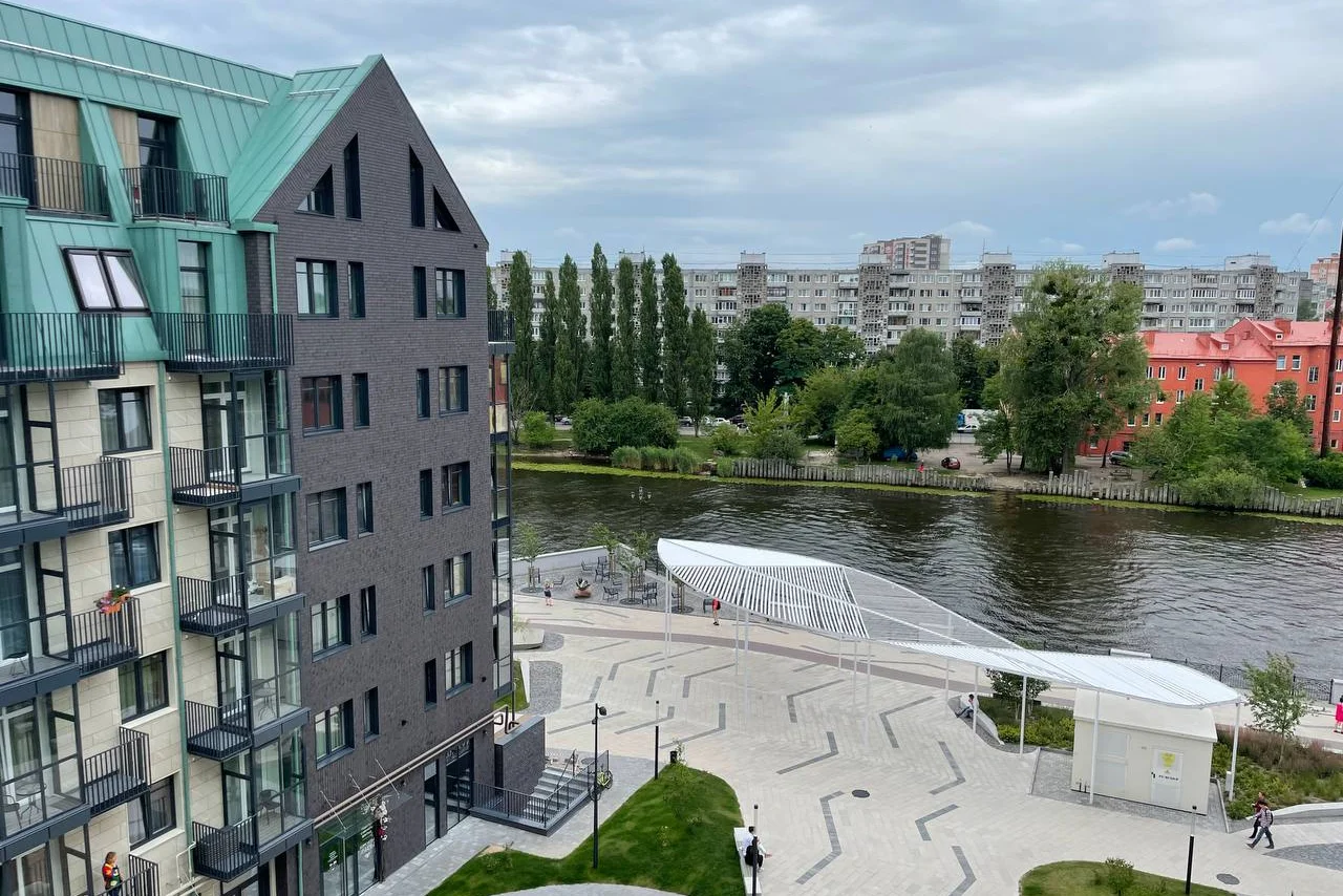 Уютная евродвушка расположена на 6-м этаже элитного дома 2022 года постройки. Из окна прекрасный вид на реку Преголь и набережную, по которой приятно прогуляться. Это самый туристический район – Рыбная деревня. Здесь расположено множество кафешек, ресторанов и сувенирных лавок.