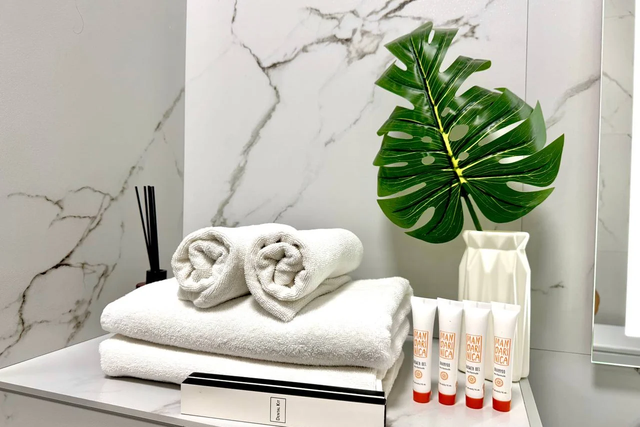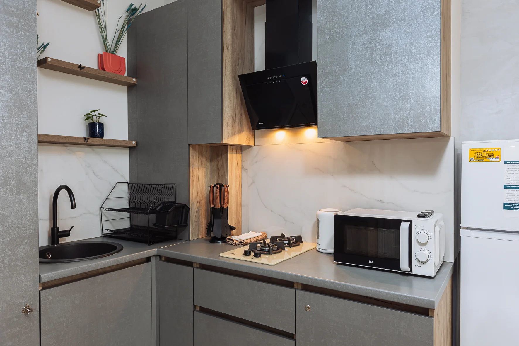 Для комфортного проживания мы предоставляем: чистое постельное белье, полотенца, тапочки, одноразовые гели, шампуни и мыло, фен, утюг с гладильной доской, ТВ, стиральную машину, электрический чайник и всю необходимую посуду для приготовления еды. Проведен бесплатный Wi-Fi.