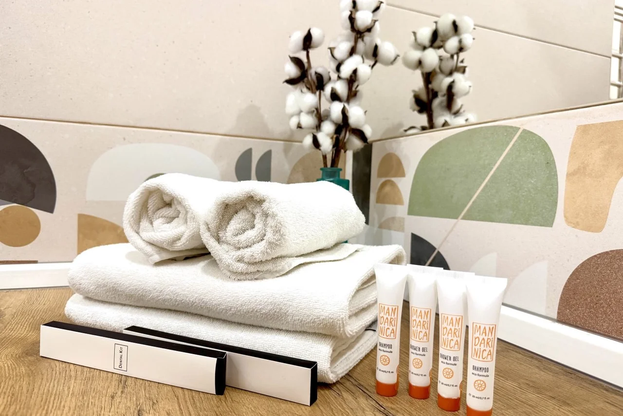 Мы стараемся сделать все, чтобы нашим гостям было комфортно проживать в апартаментах. Для Вашего пользования мы подготовили гигиенические принадлежности: мыло, шампунь, гель для душа, зубную щетку и пасту, тапочки, банные полотенца и др.